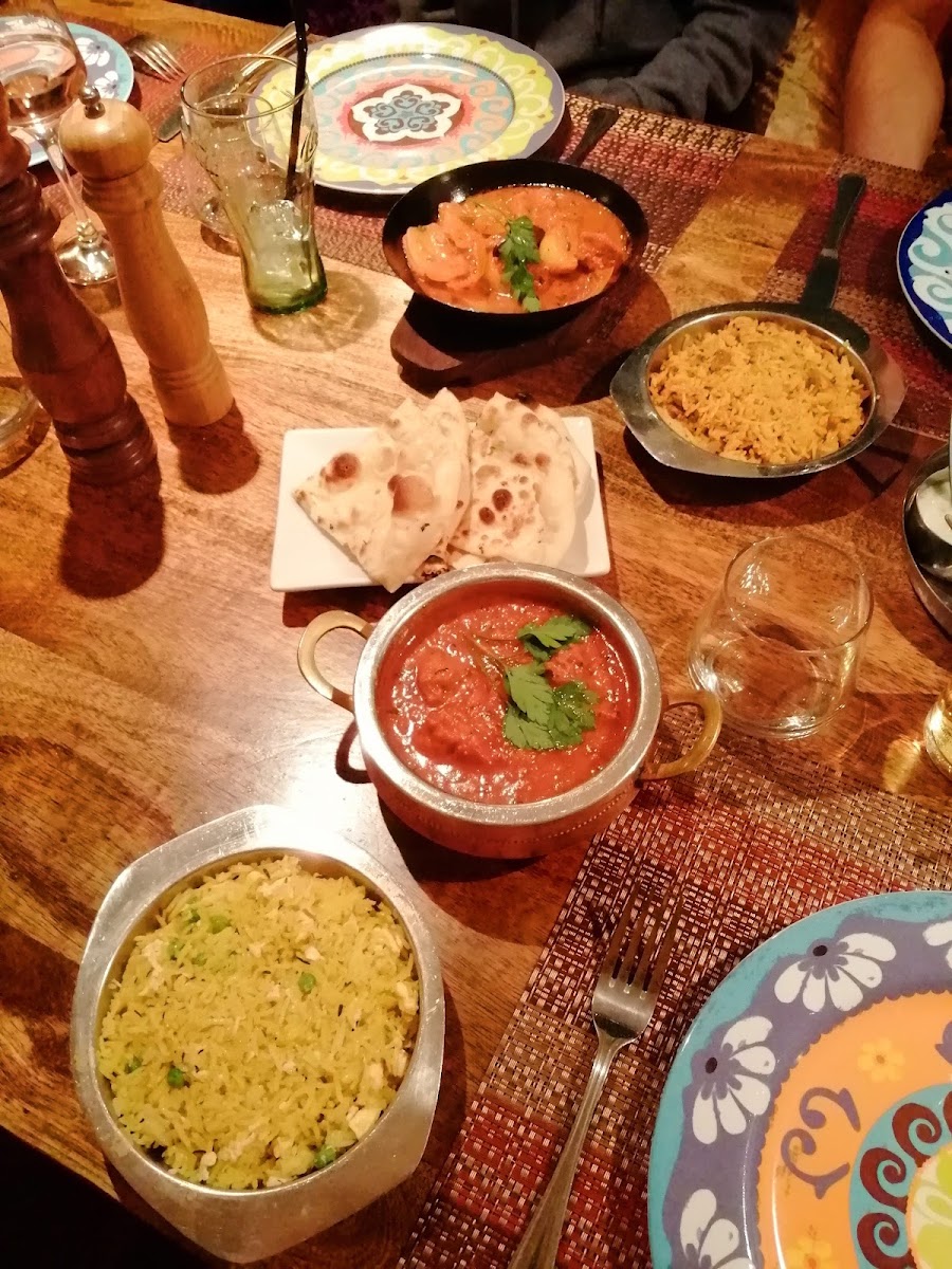 Don’t miss out on the iconic Onion Bhaji, a crispy and delicious snack that pairs beautifully with a chilled Gin and Tonic or one of their signature Cocktails. The Bombay Aloo and Tandoori Chicken bring a smoky, savory element to the table, offering a beautiful contrast of textures and flavors that you’ll absolutely love.